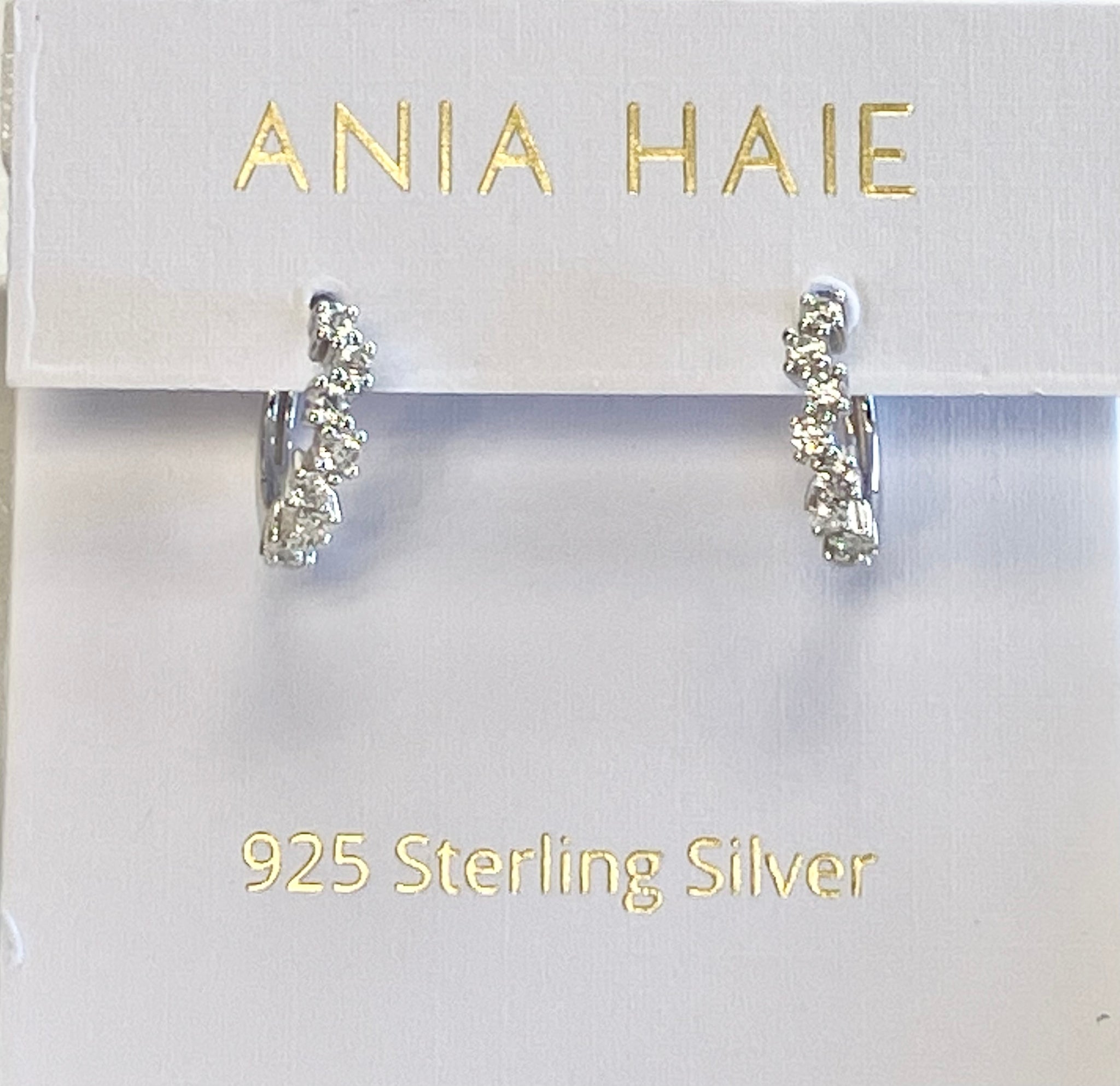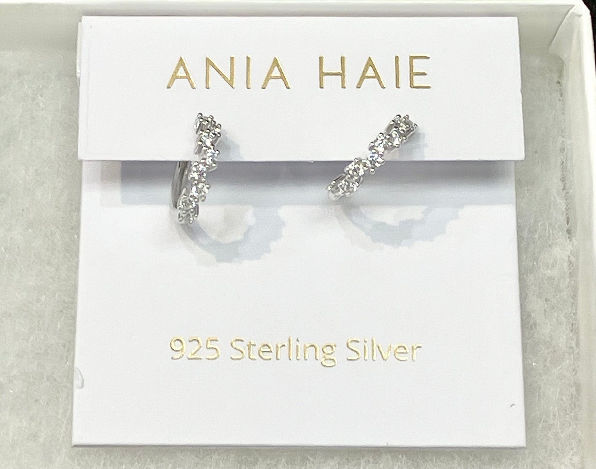 Serving up some serious detailing for your most glam earring stack, our chunky cluster huggies are all about the sparkle. Designed with clusters of shimmering cubic zirconia stones on a chunky silver setting, this huggie hoop is all you need to upgrade your ear party collection for the season ahead. The earrings are made of sterling silver. There are eight round cubic zirconia stones in each earring. The earrings measure 11.5 millimeters wide. We will provide a box.
