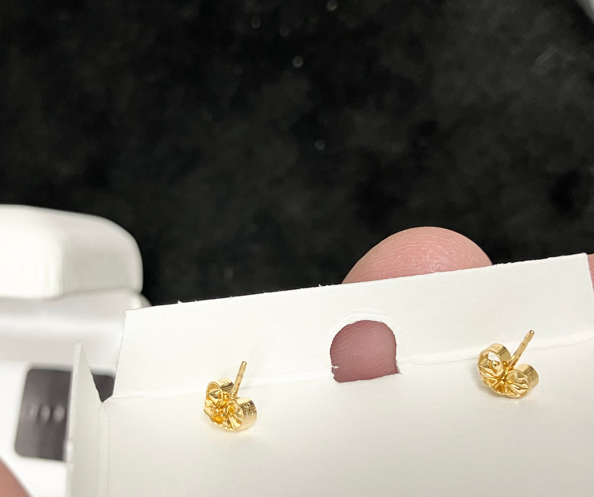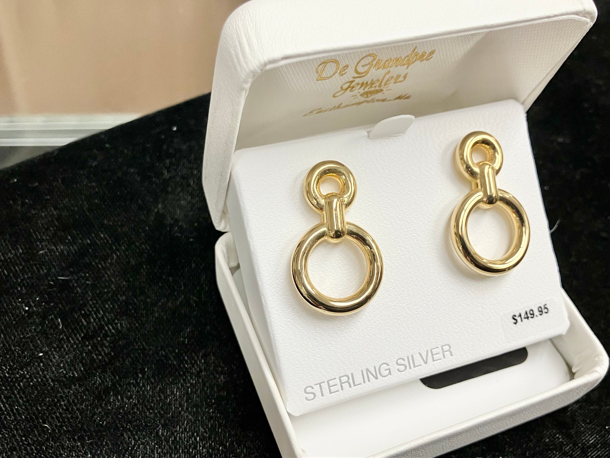 The earrings are made of sterling silver and are plated with 22k gold. The earrings measure 1 inch top to bottom. The earrings weigh 2.48 grams. We will provide a earring box.