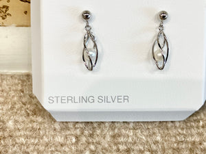 Sterling Silver Caged Fresh Water Pearl Dangle Earrings