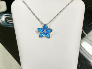 Blue Flower Silver White Sapphire Adjustable Necklace