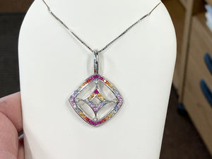 Rainbow Sapphire And Ruby White Gold Pendant And Chain