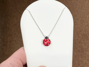 Silver Lady Bug With White Sapphire Adjustable Necklace