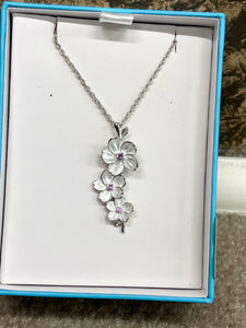 Cherry Blossoms Pink Sapphire Adjustable Silver Necklace