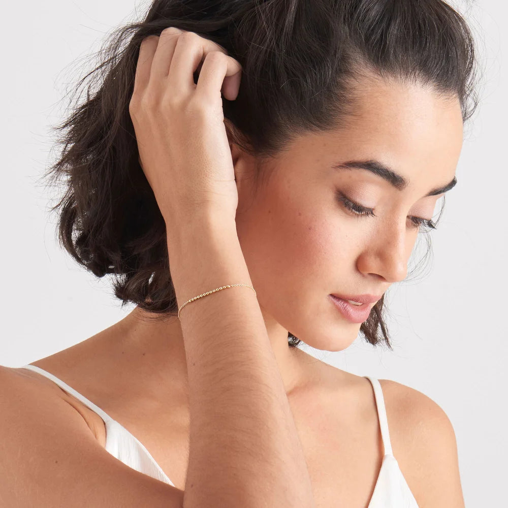 Minimal and stylish, this chain bracelet is your new must-have accessory. Layer it up and make it your own personalized look. The bracelet is made of sterling silver and is plated with 14k gold. The bracelet is adjustable and can be worn at 6.5 to 7.25 inches in length. We will provide a bracelet box.