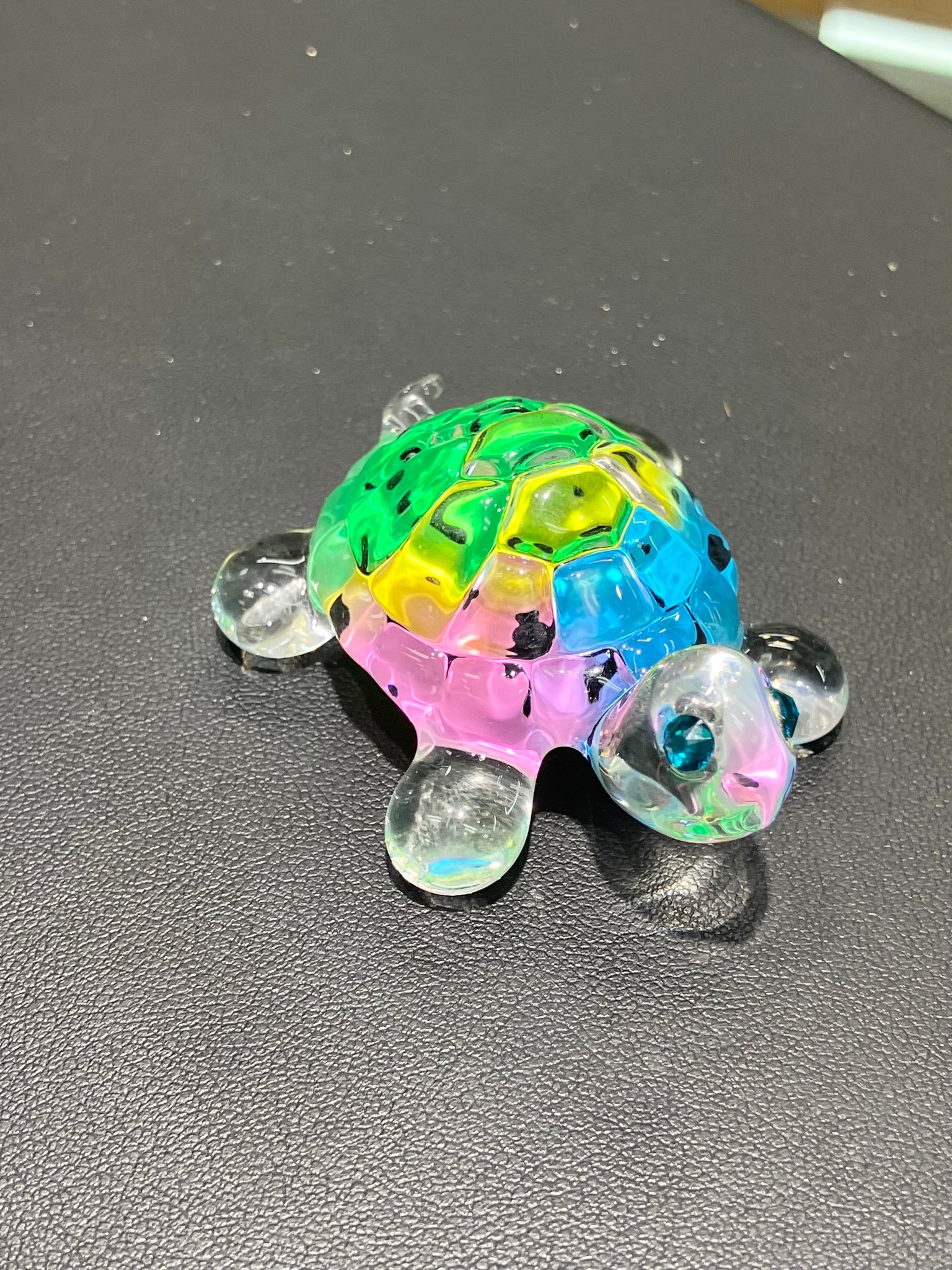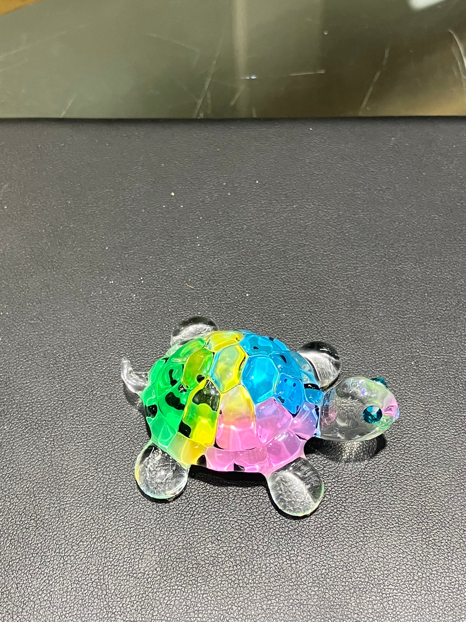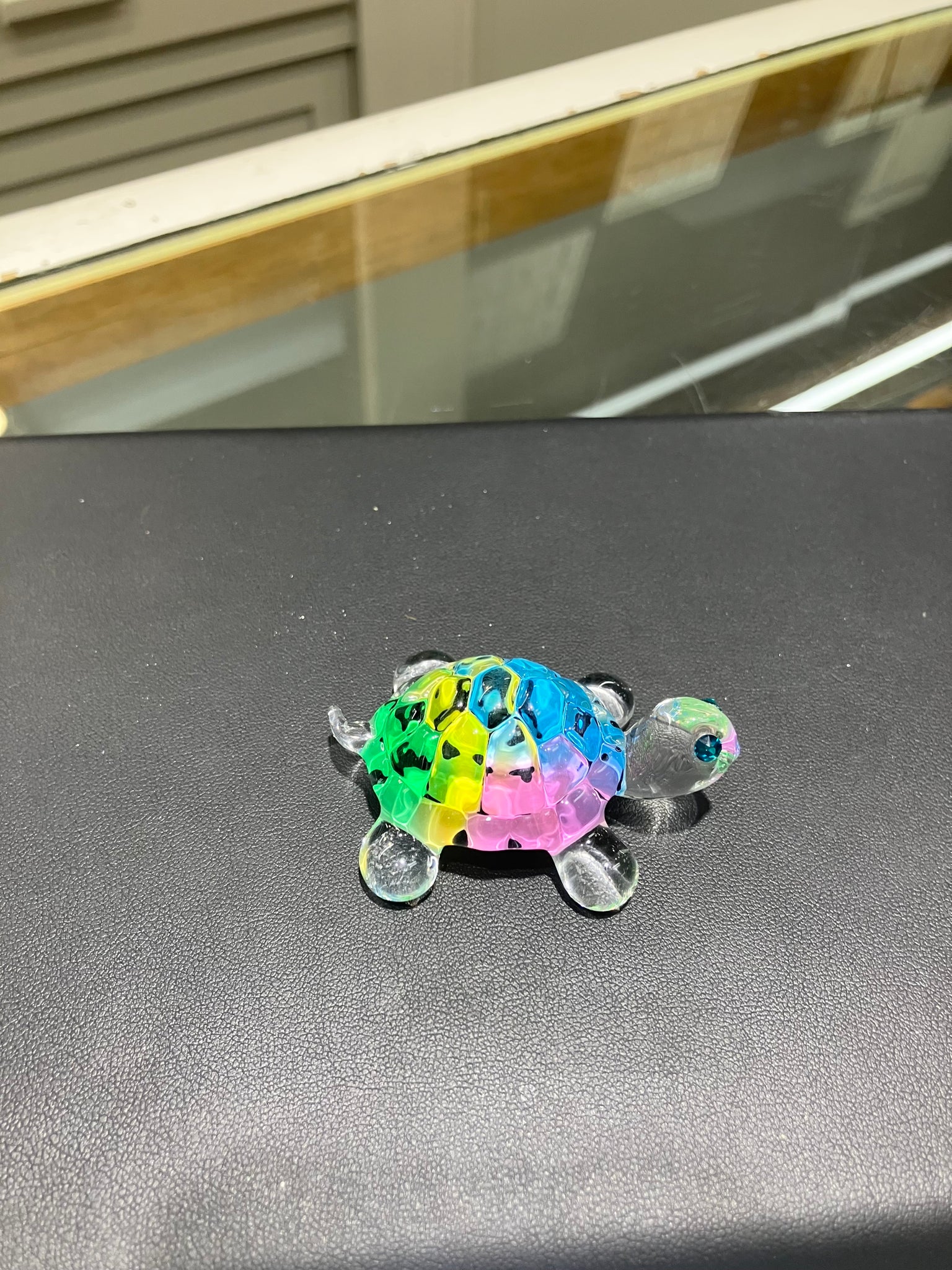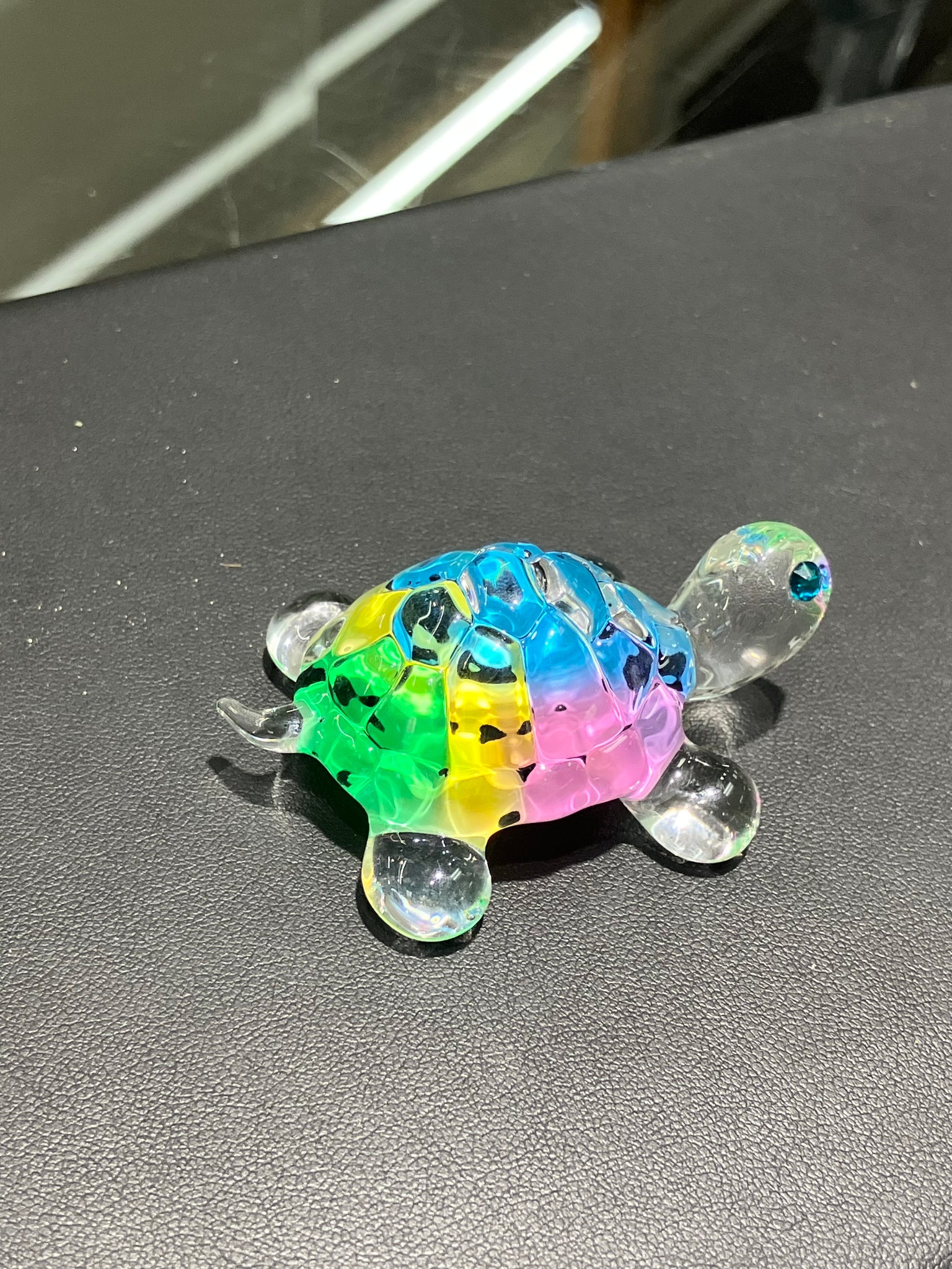 The item is a snow cone turtle glass figurine. The figurine measures 2 1/2 inches long and 1 1/4 inches high. The eyes are crystal. We will provide a well cushioned box and mark the package fragile. If you are ordering outside of the United States please check with your local post office to determine if you will have to pay customs fees or import taxes.
