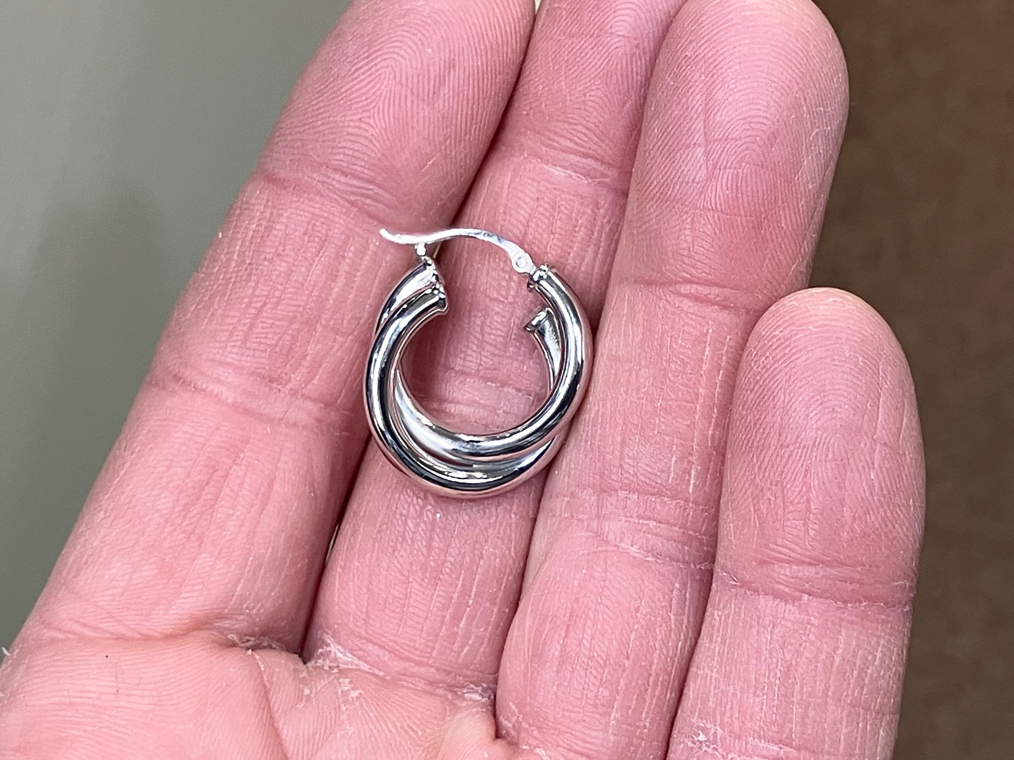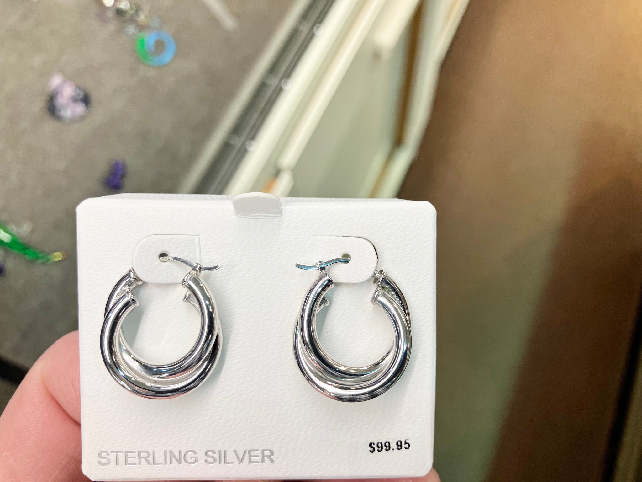 The earrings are made of sterling silver and measure 3/4 inches wide and weigh 4.2 grams. I will supply a earring box.
